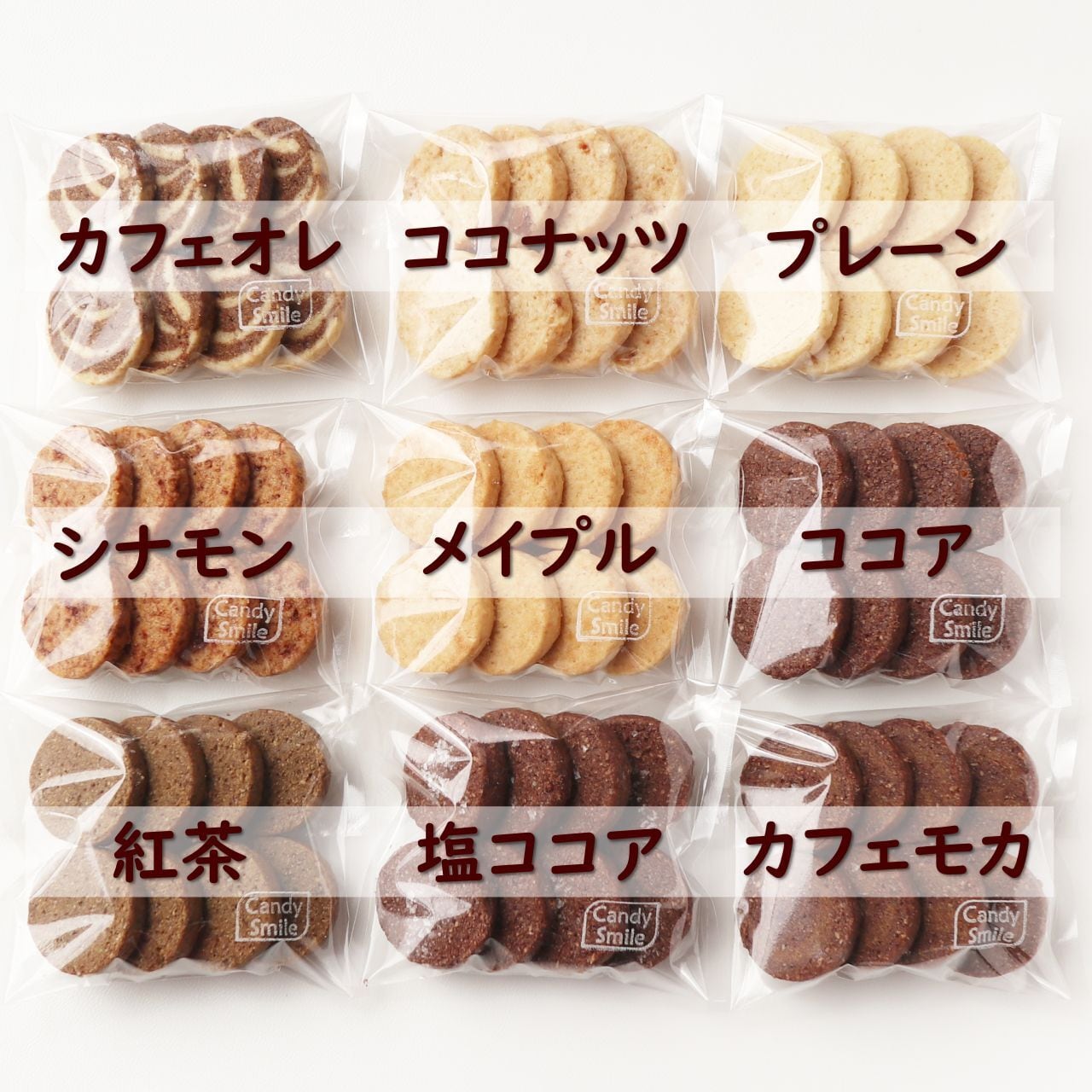 カフェオレ、ココナッツ、シナモン、メイプル、カフェモカ、塩ココア、紅茶、プレーン、ココア(各1袋)