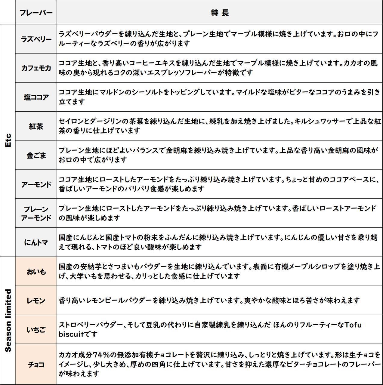 ・プレーン:おから、小麦粉、バター、きび砂糖、豆乳