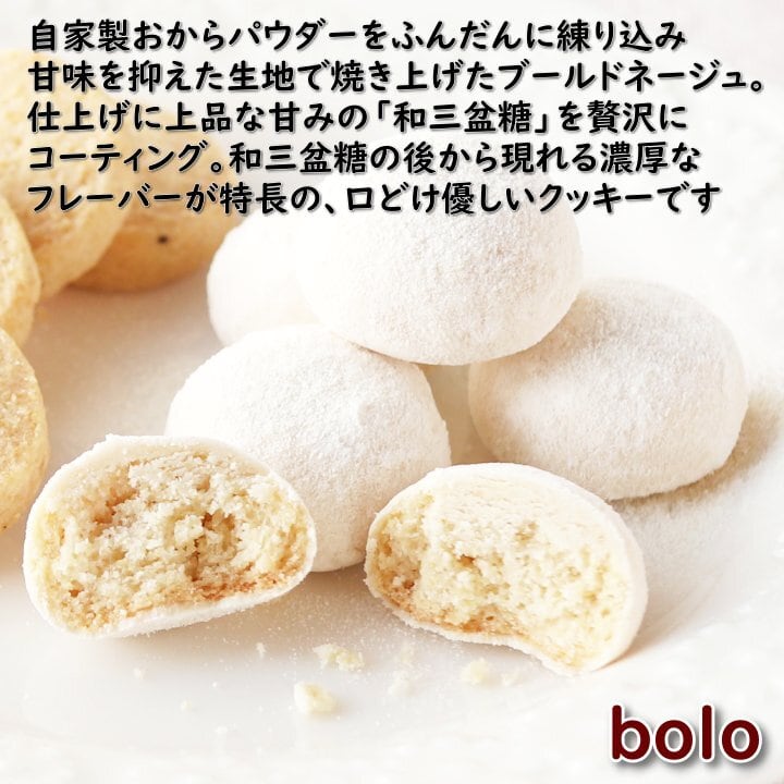 ・bolo:おから、小麦粉、バター、和三盆糖、きび砂糖、豆乳、塩