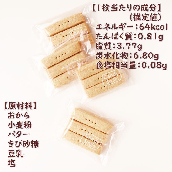 ・ショートブレッド:おから、小麦粉、バター、きび砂糖、豆乳、塩